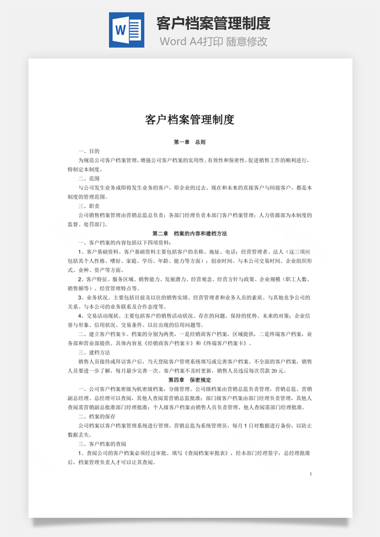 本模板为客户档案管理制度word文档,文字图片可以直接替换,使用简单方便