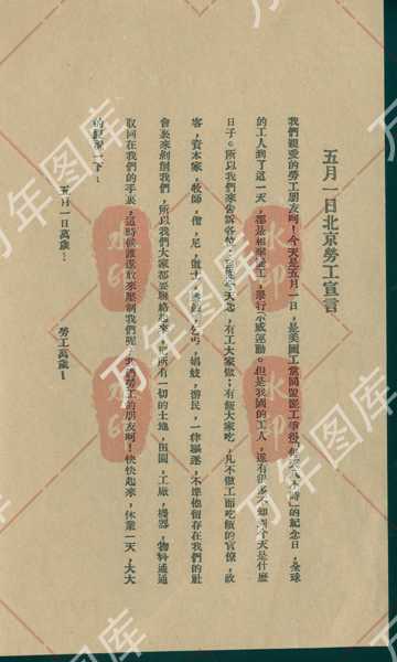 标签: 历史文献、工人运动、北京劳工、五一宣言、档案扫描、近代史研究、社会运动