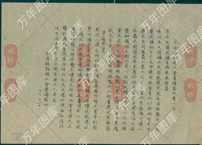 标签: 历史档案、铁路史料、工人运动、民国文献、工会组织、京汉铁路、档案研究、历史研究