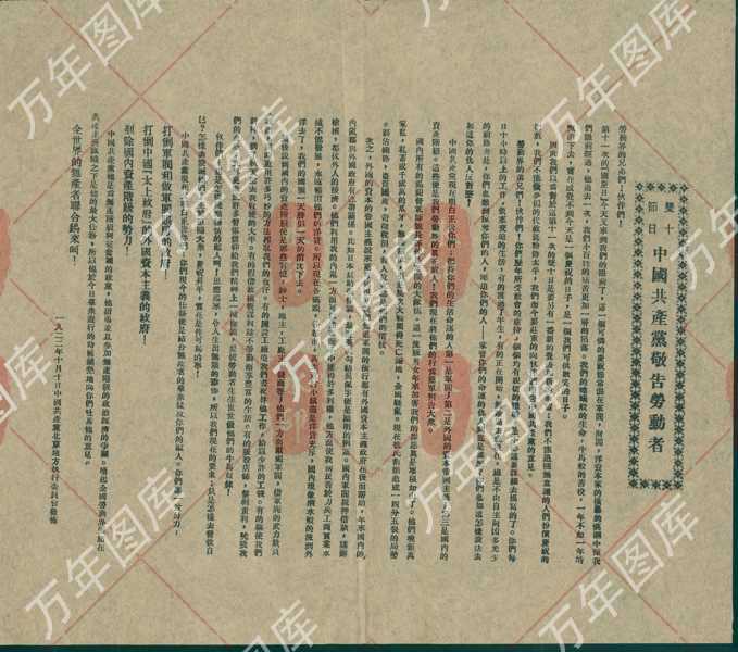 文件名称: 1-3 雙十節日中國共產黨敬告勞動者.一九二二年十月十日-32.5X28.3.tif